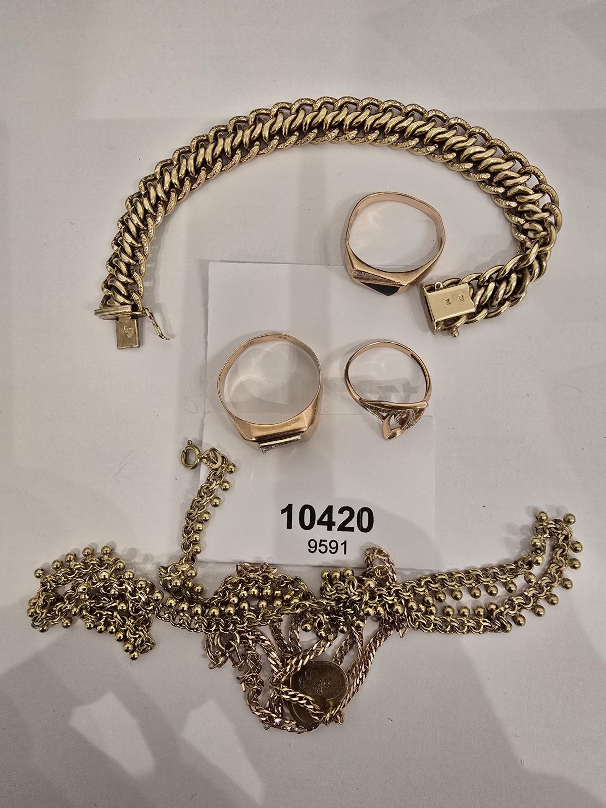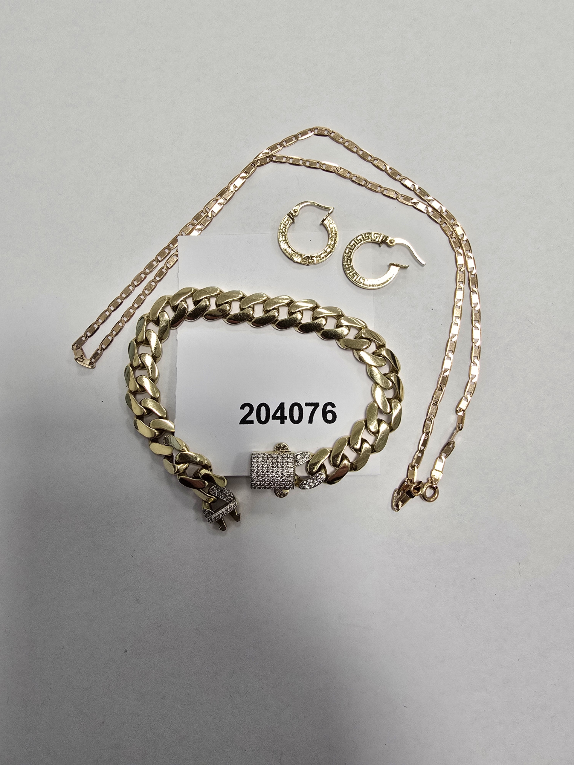 1 Armband, 1 Kette, 1 Paar Creolen alles 585/- Gold zusammen ca. 18,6 Gramm