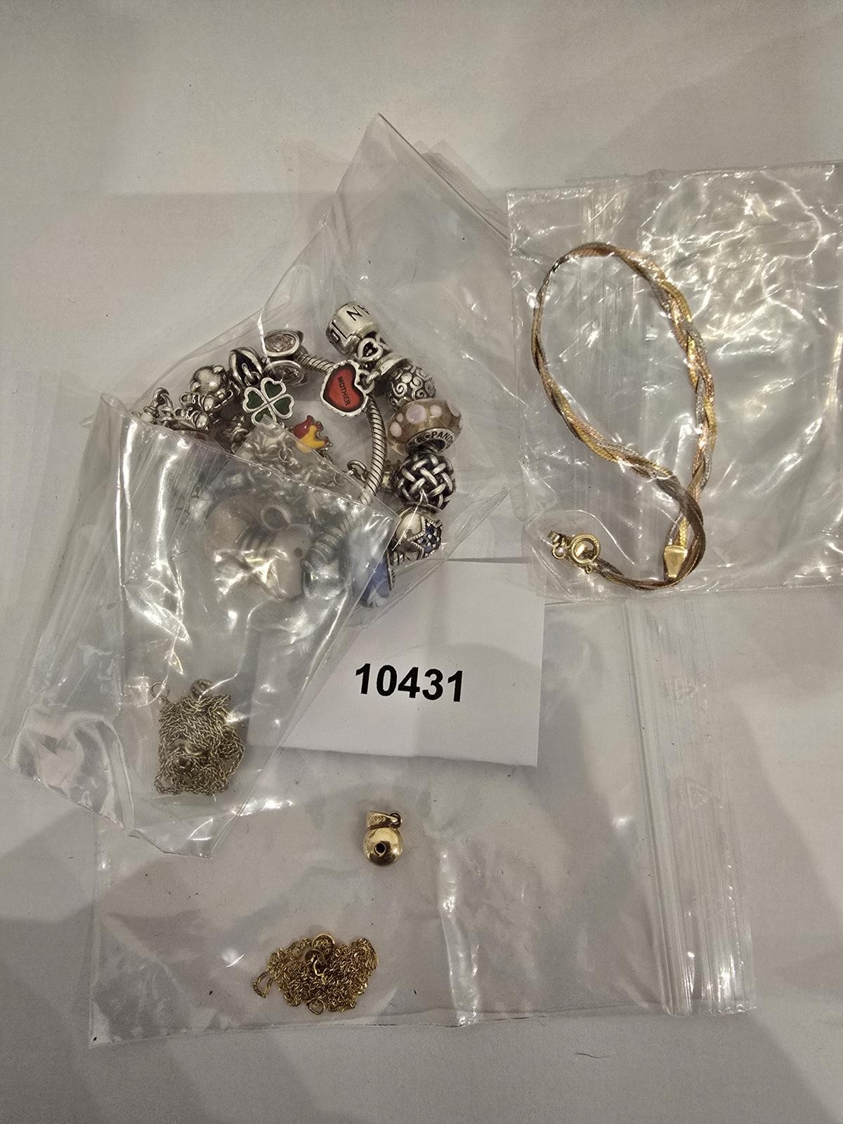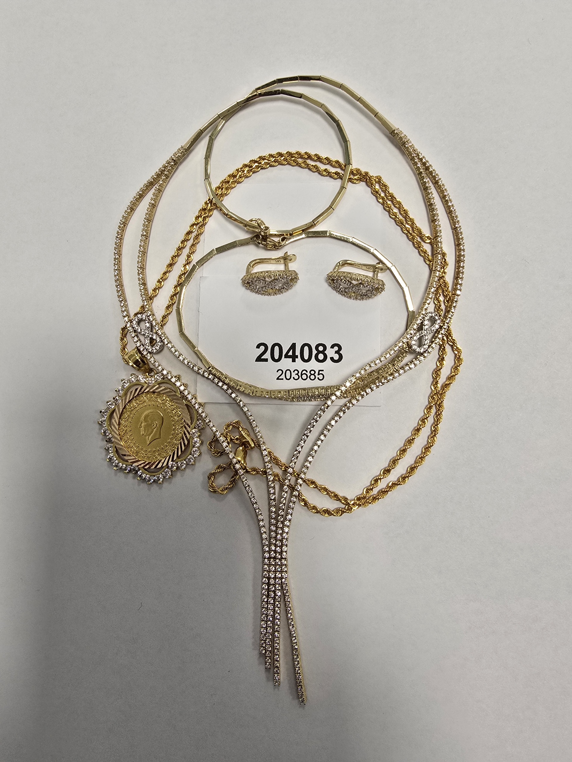 1 Kette mit Anhänger, Ohrstecker und Creolen