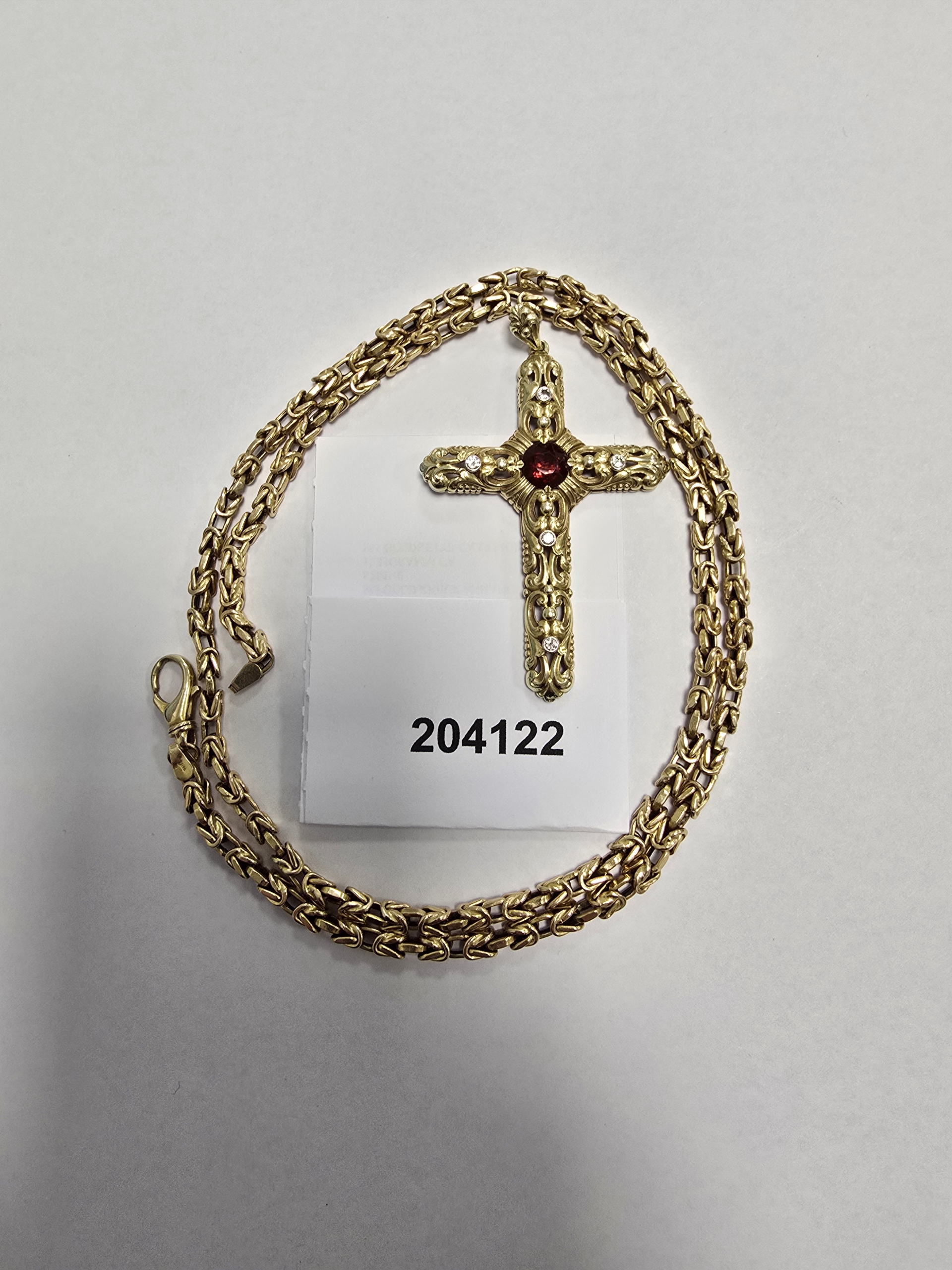 Kreuz Anhänger mit Steine und Kette alles 585/- ca. 29,54 Gramm