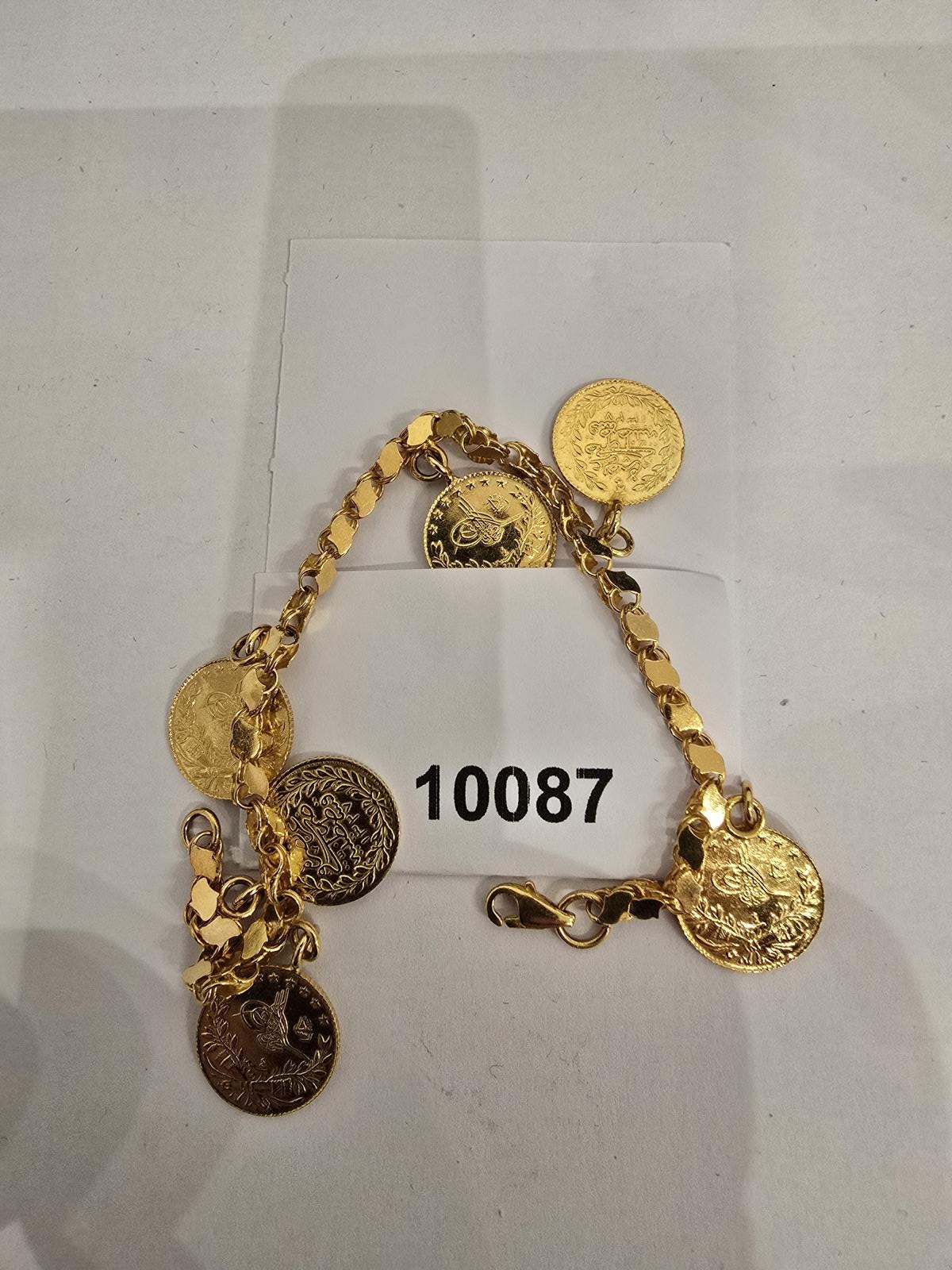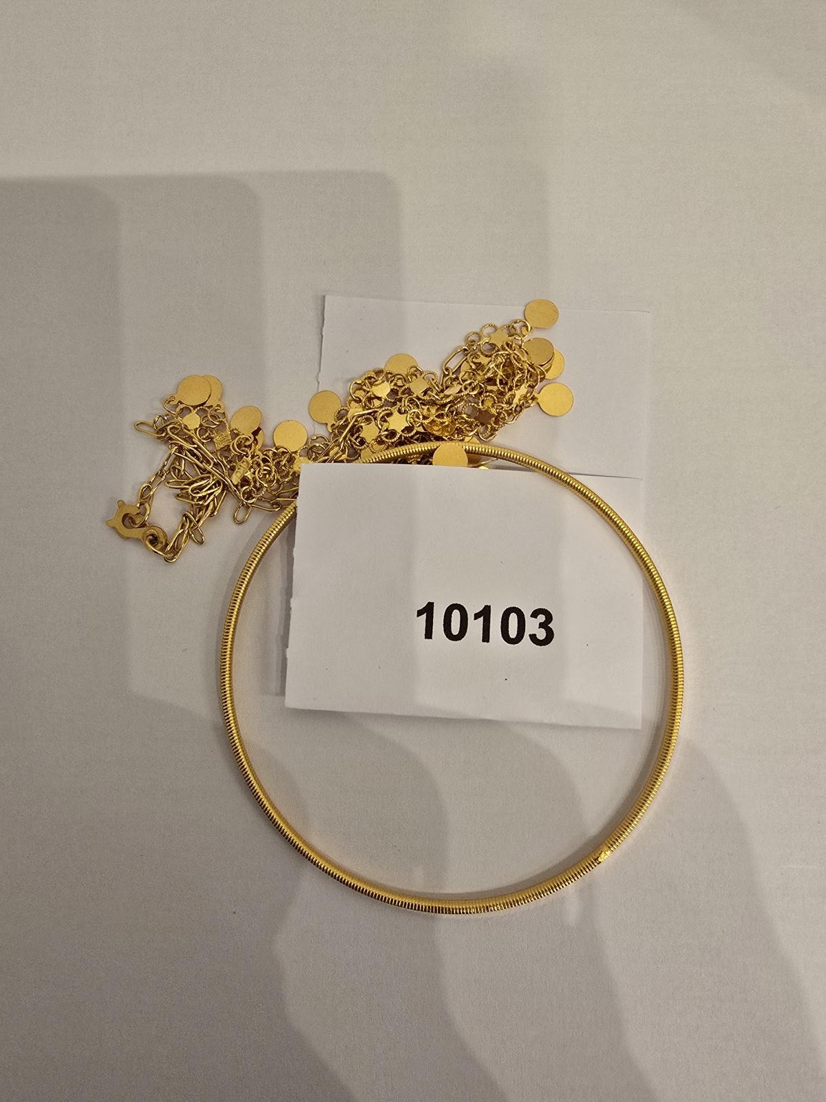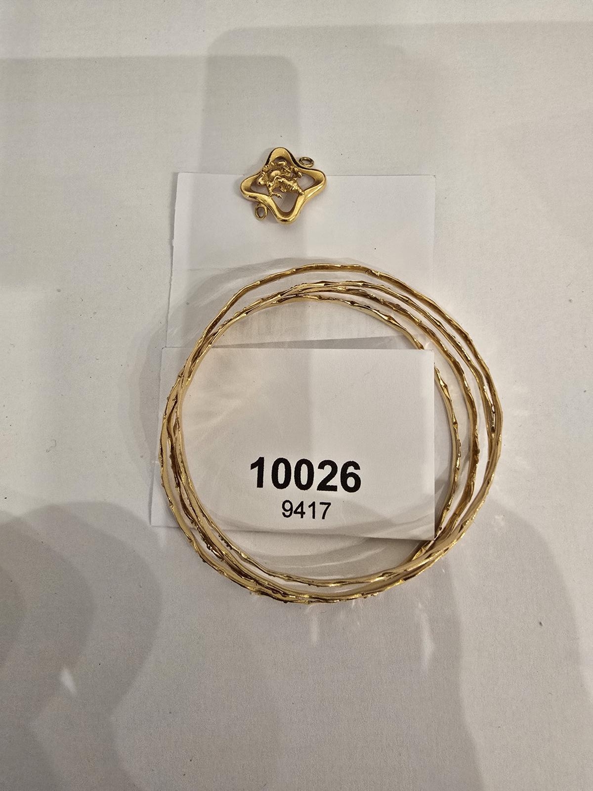 4 Armreifen aus 875/- Gold und 1 Anhänger aus 916/- Gold alles ca. 25,47 Gramm