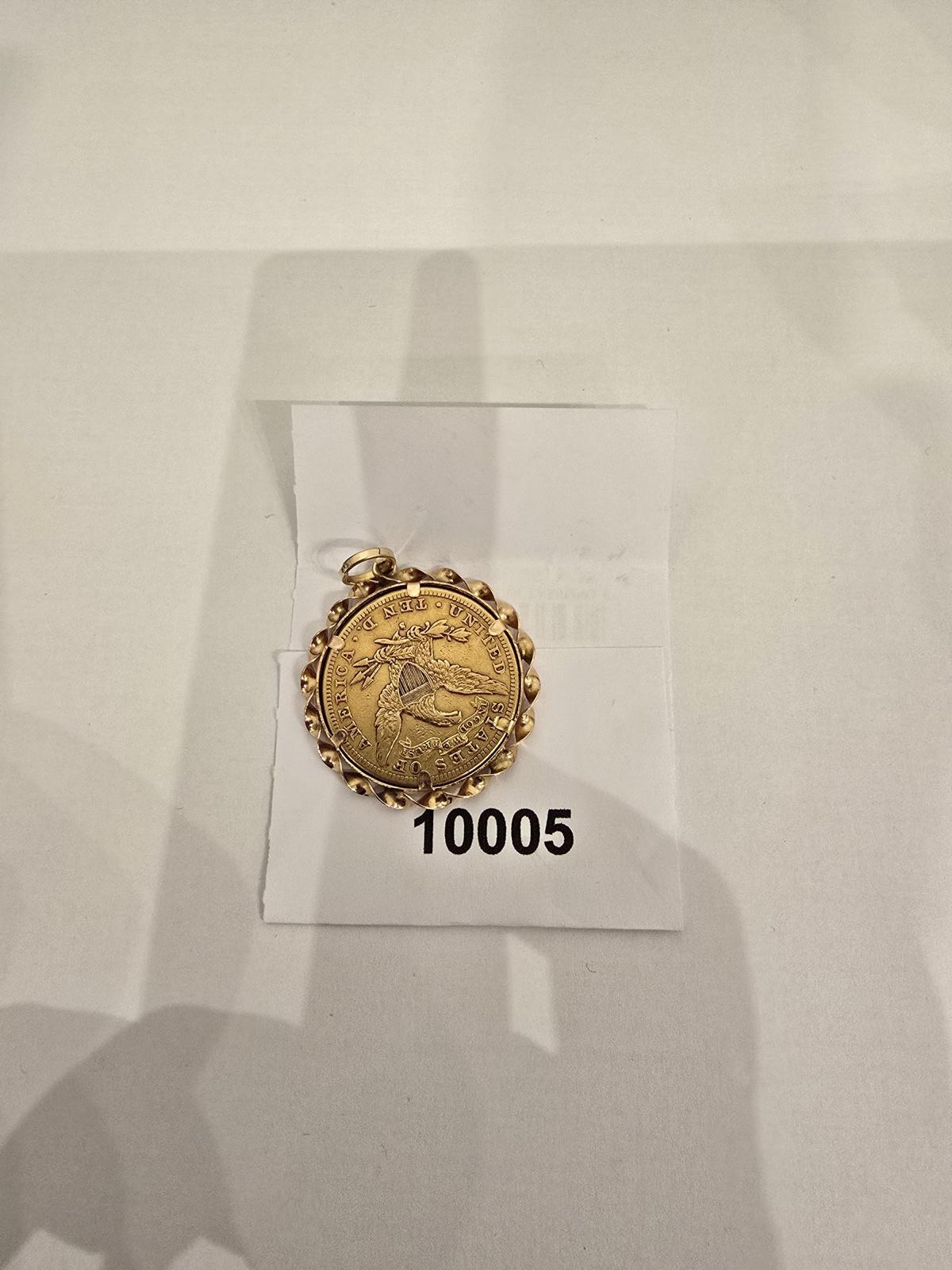 1 Münze 900/- Gold in Fassung ca. 19,37 Gramm